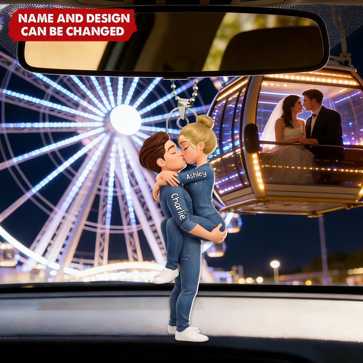 For the couple whose love language includes dashboard smiles. This adorable ornament adds a dose of your personal sweetness to every drive. With a kiss eternally shared in charming detail, and personalized with your names, it’s your inside joke and quiet romance, always on display for your favorite co-pilot.